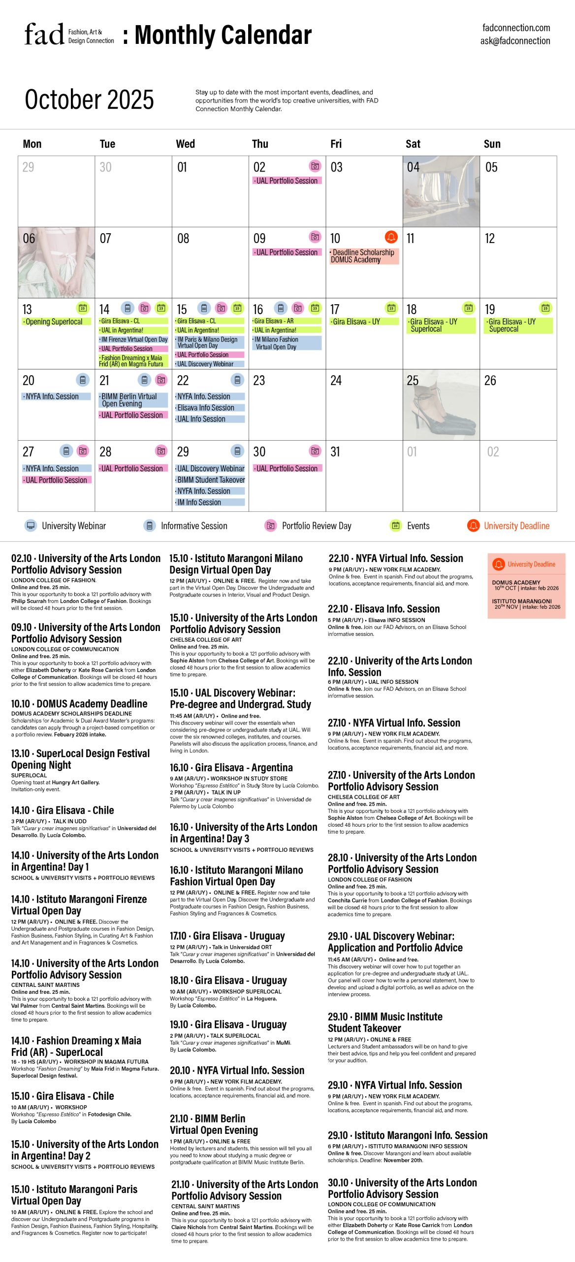 The month also includes exclusive live sessions with FAD Advisors on Marangoni, UAL, and Elisava, helping you get closer to the schools shaping the creative industries.